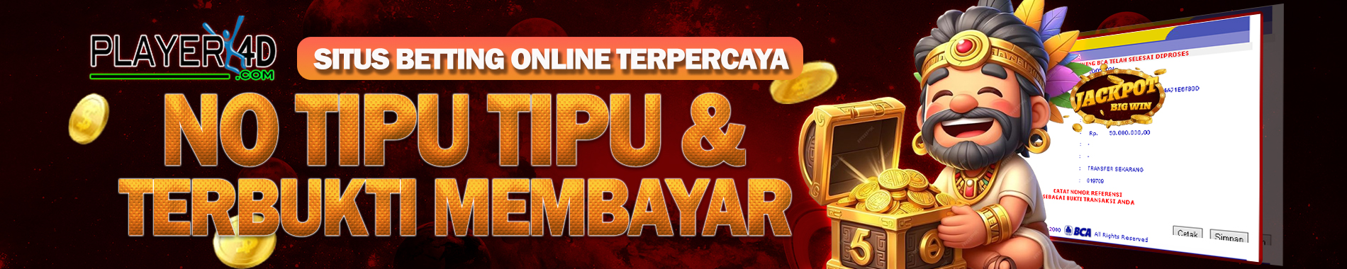 Player4D adalah agen resmi situs togel online terpercaya yang memiliki banyak pasaran togel seperti SYDNEY, SINGAPORE, TAIWAN & HONGKONG terbaik dengan diskon terbesar. Tentunya anda juga bisa mendapatkan info result dan prediksi togel 4d Setiap harinya. Player4D juga merupakan salah satu situs pilihan favorit sebagai situs bandar togel terpercaya bagi para penggila 4D & toto. Kami selalu menjadi pilihan utama sebagai bandar judi dalam permainan Toto karena memiliki banyak pasaran official yang mudah di prediksi. Tidak hanya togel online Player4D juga merupakan bandar judi slot terkemuka di Indonesia yg terkenal gacor.